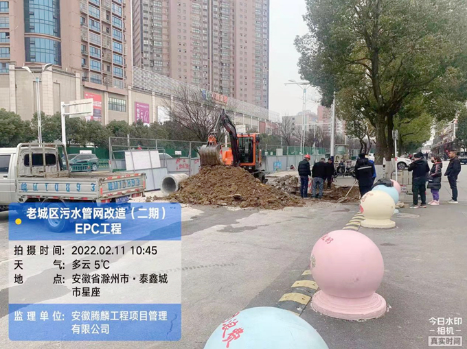 2月11日,老城區(qū)污水管網(wǎng)改造項(xiàng)目正在進(jìn)行清流路和南譙路微頂管和支管接入施工