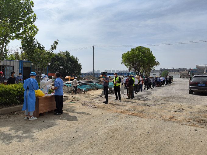 “感謝你們交航項目在工程建設這么忙碌的情況下,還抽調人員支援我鄉(xiāng)核酸檢測工作,這是對我們疫情防控工作最大的支持?!?月21日下午,嚴店鄉(xiāng)衛(wèi)生院伊院長與核酸檢測志愿者們說到。面對肥西縣嚴店鄉(xiāng)區(qū)域在建項目多、所有參建項目人員一周三檢及醫(yī)護檢測人員不足的情況下,引江濟淮項目部積極整合自身資源主動擔當作為,第一時間抽調1名具有護士執(zhí)業(yè)資格證人員和1名核酸采集掃碼人員,并將新時代文明實踐點設置為核酸檢測點,在嚴店鄉(xiāng)衛(wèi)生院指導下,承擔項目工地自檢工作,配合屬地政府開展核酸采集工作。截至目前,已完成核酸采集8679人次,切實為屬地政府減輕了檢測壓力。