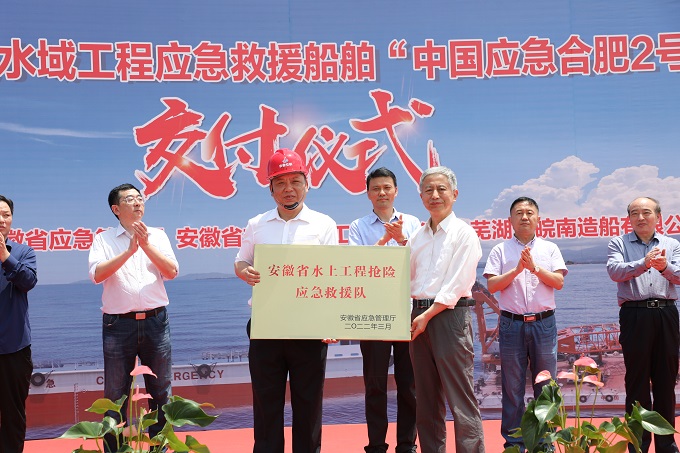 5月23日上午11時18分,伴隨著船舶隆隆的汽笛聲,在隆重的交付儀式中,中國首艘水域工程應(yīng)急救援船舶“中國應(yīng)急合肥2號”正式入列安徽交航應(yīng)急救援基地。安徽省應(yīng)急管理廳一級巡視員汪黎明,建工控股副總工程師、股份公司首席信息官吳紅星出席儀式。應(yīng)急管理廳救援協(xié)調(diào)和預(yù)案管理處處長魏文斌、三級調(diào)研員沈磊,蕪湖市應(yīng)急管理局副局長程克柱,安徽省皖江船舶檢驗局副局長孫成嶺、王其端,蕪湖市皖南造船有限公司副總經(jīng)理陸青松等參加上述儀式。公司黨委書記、董事長方申柱主持儀式。