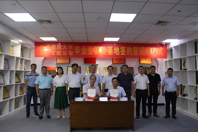 7月15日下午,安徽建筑大學(xué)黨委常委、副校長閔杰一行赴安徽交航公司開展訪企拓崗座談交流會(huì),并與公司簽訂高校畢業(yè)生就業(yè)基地建設(shè)協(xié)議。公司黨委書記、董事長方申柱出席簽約儀式并為安徽建筑大學(xué)高校畢業(yè)生就業(yè)基地揭牌。