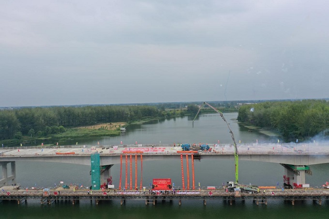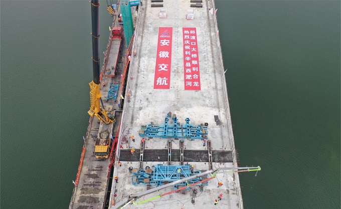 兩年磨一劍,天塹變通途。自2020年12月18日開(kāi)工以來(lái),在工期緊、任務(wù)重、新冠肺炎疫情以及今年夏季高溫天氣的困難條件下,項(xiàng)目部全體參建職工始終踐行安徽交航“團(tuán)結(jié)、拼搏、求實(shí)、創(chuàng)新”的企業(yè)精神,發(fā)揚(yáng)“特別能吃苦,特別能戰(zhàn)斗”的企業(yè)作風(fēng),恪守公司“重合同、守信用”和“質(zhì)量第一、用戶(hù)至上”的服務(wù)宗旨,攻堅(jiān)克難、踔厲奮發(fā)。項(xiàng)目部科學(xué)組織、合理施工,在六百多個(gè)日日夜夜艱苦鏖戰(zhàn)下,邵渡口大橋主橋順利合龍,主橋合龍混凝土澆筑并于9月14日下午6點(diǎn)10分澆筑完成,邵渡口大橋項(xiàng)目關(guān)鍵節(jié)點(diǎn)任務(wù)圓滿(mǎn)完成。
