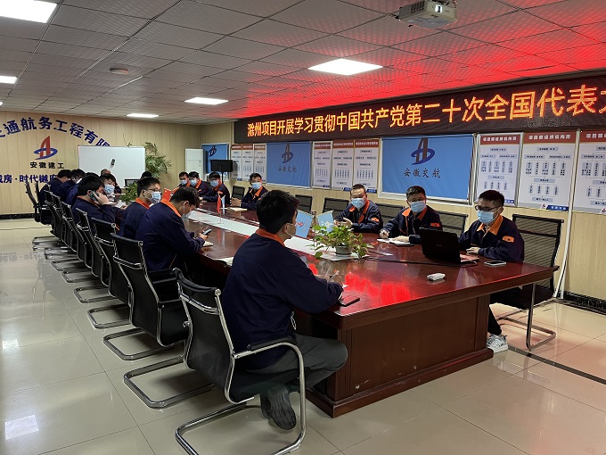 10月27日,滁州項目黨支部組織項目全體人員在會議室召開學習宣貫中國共產(chǎn)黨第二十次全國代表大會精神專題會議,項目經(jīng)理王德生主持會議。