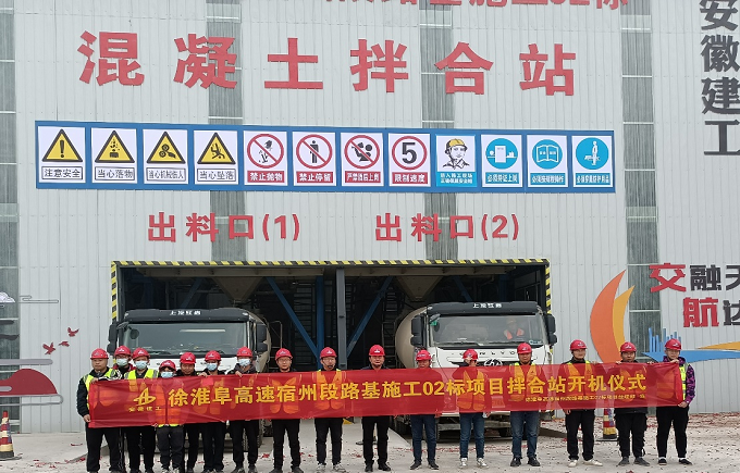 12月8日上午,伴隨著機聲隆隆,徐淮阜高速宿州段路基02標(biāo)項目部混凝土拌合站試機成功。