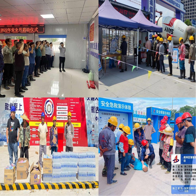 強化安全管理,提高職工安全意識。項目全面落實安全生產(chǎn)責任制度,嚴格實行領導帶班制度,加強生產(chǎn)過程中安全隱患排查,尤其是對特種作業(yè)、特種設備嚴格按要求管理。依據(jù)項目制定的安全檢查制度,開展了日常巡查、定期檢查、專項巡查、節(jié)前專項檢查及節(jié)后復工專項檢查等。自開工至今項目部共開展安全進場教育1874人次;安全技術(shù)交底435次;共下發(fā)91份安全隱患整改通知單,完成352條安全隱患的整改工作;開展“平安創(chuàng)建”、“安全生產(chǎn)月”、“安全應急演練”等專題教育以及系列活動。為應對夏季高溫天氣,項目部調(diào)整施工時間錯開高溫時間段,在施工現(xiàn)場設置納涼棚并備有綠豆湯、防暑降溫藥品,采取一系列措施預防工人中暑,截至目前項目未發(fā)生安全事故。