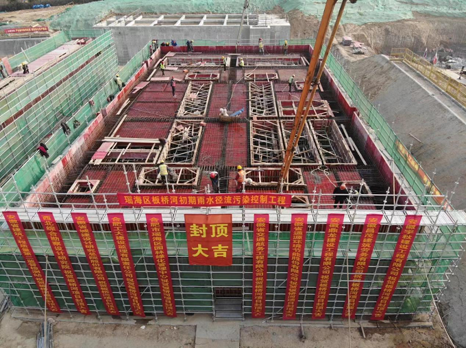 1月3日下午,瑤海區(qū)板橋河初期雨水徑流污染控制工程項目主體結構順利封頂。