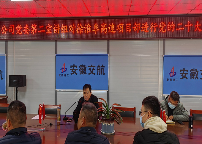 12月15日上午,公司黨委副書(shū)記、總經(jīng)理杜海峰赴徐淮阜高速項(xiàng)目部開(kāi)展黨的二十大精神專題宣講。