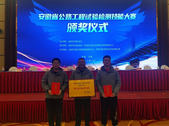 近日,在安徽省交通運輸廳舉辦的全省公路工程試驗檢測技能大賽中,安建品創(chuàng)檢測公司代表隊憑借扎實的理論知識和實操技術能力榮獲“優(yōu)秀組織獎”,參賽人員吳祥領和鄭浩同志榮獲“優(yōu)秀選手”稱號。