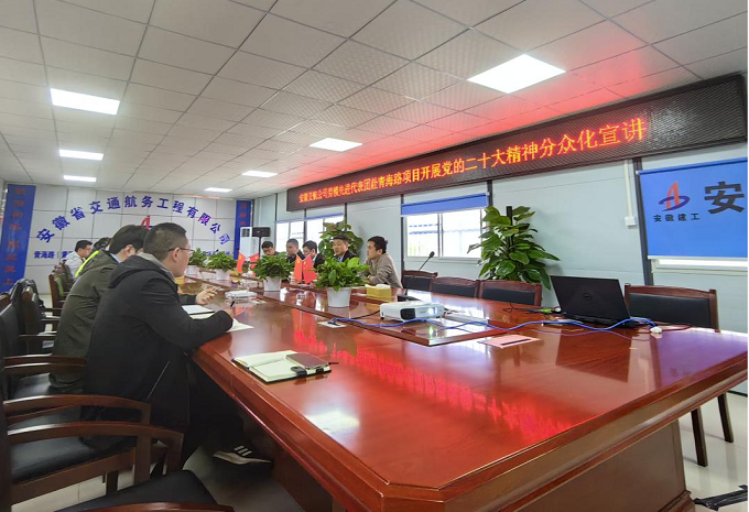 近日,勞模代表宣講團赴青海路項目開展黨的二十大精神宣講。宣講團由“2021年度集團勞動模范”潘家奎、“2019年度公司勞動模范”田龍、“2021年度公司勞動模范”韓久春組成,青海路項目全體員工參加宣講會。
