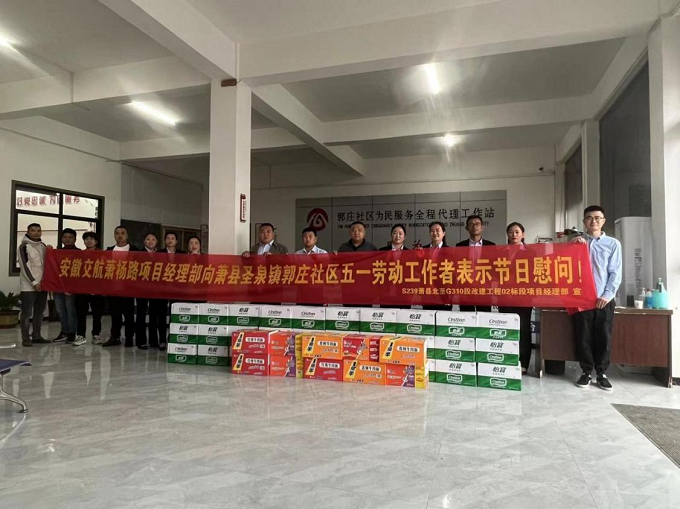 5月3日,蕭楊路項目赴蕭縣圣泉鎮(zhèn)郭莊社區(qū)開展“五一”勞動節(jié)慰問活動,向社區(qū)勞動者表示親切慰問。