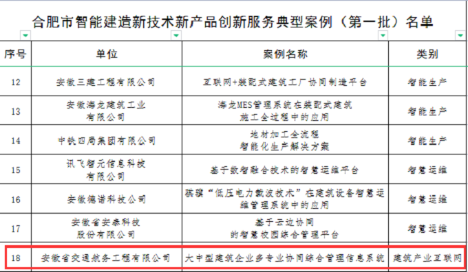 近日,合肥市城鄉(xiāng)建設(shè)局發(fā)布了合肥市智能建造新技術(shù)新產(chǎn)品創(chuàng)新服務(wù)典型案例(第一批),以建工交航綜合管理信息系統(tǒng)為基礎(chǔ)形成的案例“大中型建筑企業(yè)多專業(yè)協(xié)同綜合管理信息系統(tǒng)”作為唯一一個(gè)建筑產(chǎn)業(yè)互聯(lián)網(wǎng)類別入選。