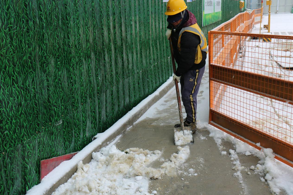再次面對(duì)寒潮,商機(jī)廠租賃住房項(xiàng)目第一時(shí)間組織人員清理辦公區(qū)、生活區(qū)、施工現(xiàn)場(chǎng)道路的積雪,鋪設(shè)防滑草袋,確保惡劣天氣條件下項(xiàng)目各工作安全有序推進(jìn)。