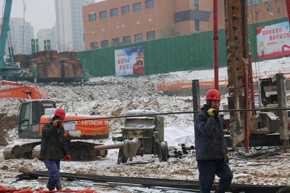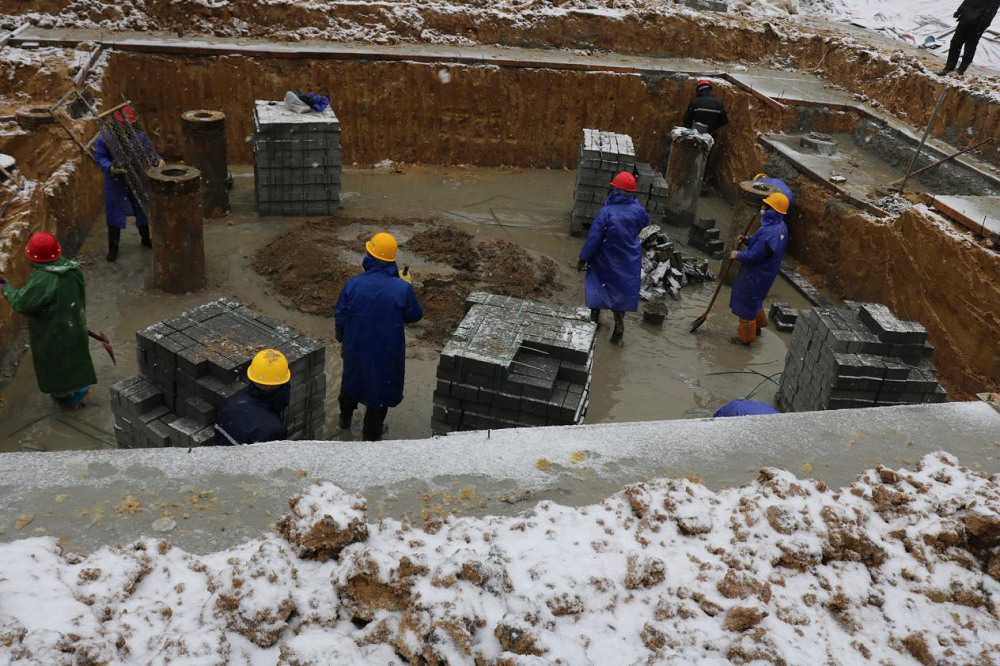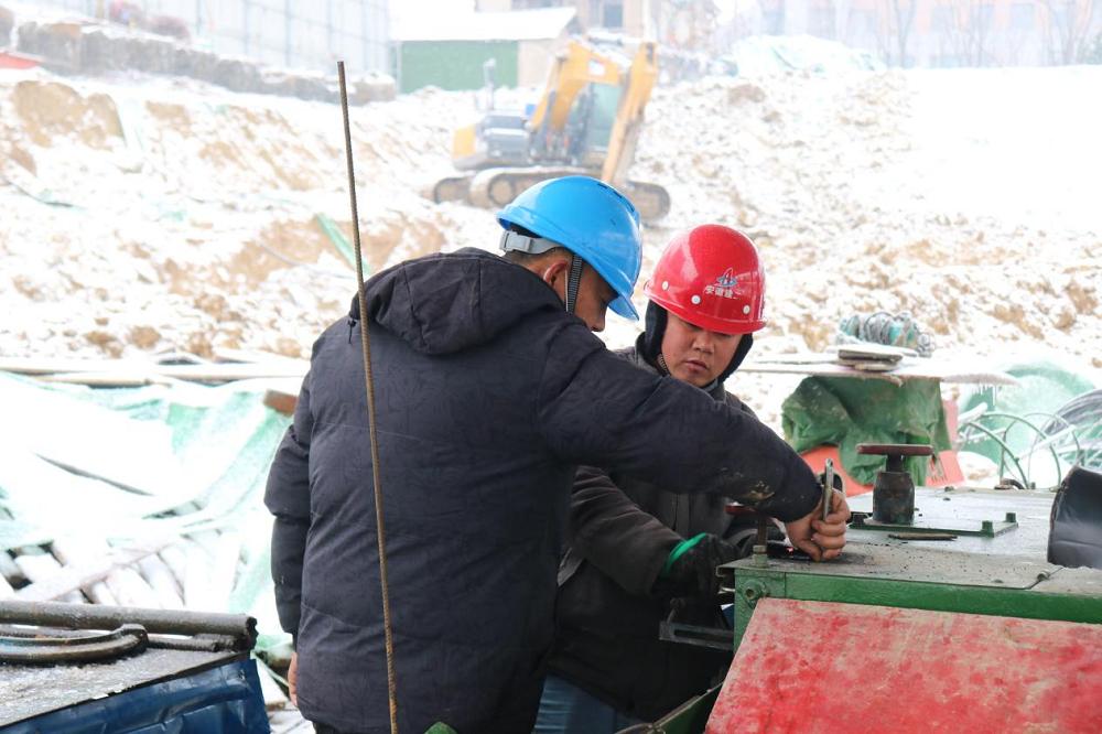 項(xiàng)目部結(jié)合實(shí)際開展安全施工教育培訓(xùn),有效推進(jìn)現(xiàn)場(chǎng)樁芯鋼筋加工制作、礎(chǔ)磚胎膜抹灰、砌筑、道路鋪設(shè)磚渣、地庫承臺(tái)樁芯澆筑等生產(chǎn)工作,確保降雪降溫不降產(chǎn)。