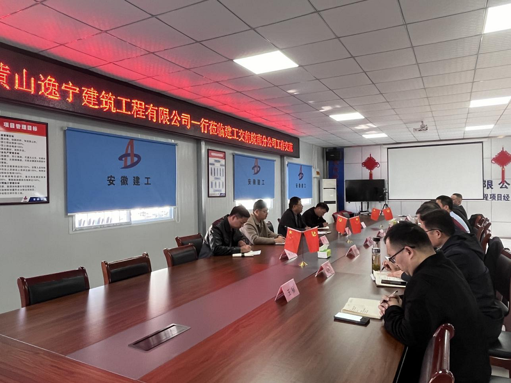 黃山逸寧建筑公司董事長汪國權(quán)、副總經(jīng)理方駿及相關(guān)部門負(fù)責(zé)人;建工交航皖南分公司領(lǐng)導(dǎo)班子及所屬各項(xiàng)目負(fù)責(zé)人參加會(huì)議。