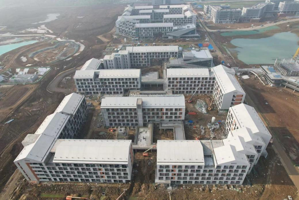 安徽醫(yī)科大學(xué)新醫(yī)科中心(新校區(qū))一期項目一批次建安工程施工及總承包服務(wù)項目位于位于合肥市肥西縣獨秀園與李陵山路交口東北角,建筑面積約20萬㎡,合同額約3.7億元。主要建設(shè)內(nèi)容包括D-1生活組團、D-2生活組團等土建、裝飾和安裝工程。自復(fù)工以來,項目緊鑼密鼓推進施工任務(wù),目前主體結(jié)構(gòu)已全部完成,外墻裝飾完成90%,內(nèi)裝飾瓷磚完成95%,機電安裝完成80%,累計完成產(chǎn)值3.05億元。項目建設(shè)過程中克服了合同節(jié)點時間緊、施工任務(wù)艱巨等諸多困難。項目建成后,將對接長三角一體化發(fā)展戰(zhàn)略,打造“政產(chǎn)學(xué)研用”一體化新校區(qū),形成“學(xué)科+產(chǎn)業(yè)+專業(yè)”的醫(yī)學(xué)科創(chuàng)集群。