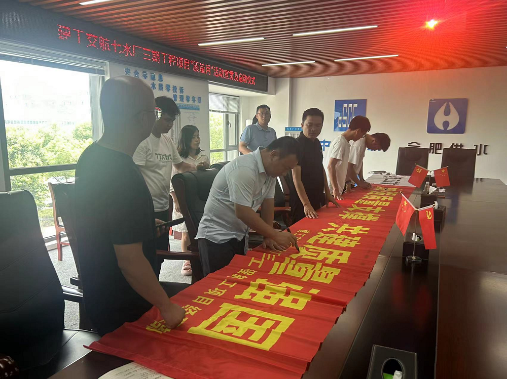 9月3日,七水廠三期工程項(xiàng)目開展2024年“質(zhì)量月”活動(dòng)啟動(dòng)儀式,宣貫公司文件、質(zhì)量月宣誓及項(xiàng)目質(zhì)量月活動(dòng)方案宣貫、組織觀看質(zhì)量事故案例、制作宣傳條幅并簽名。