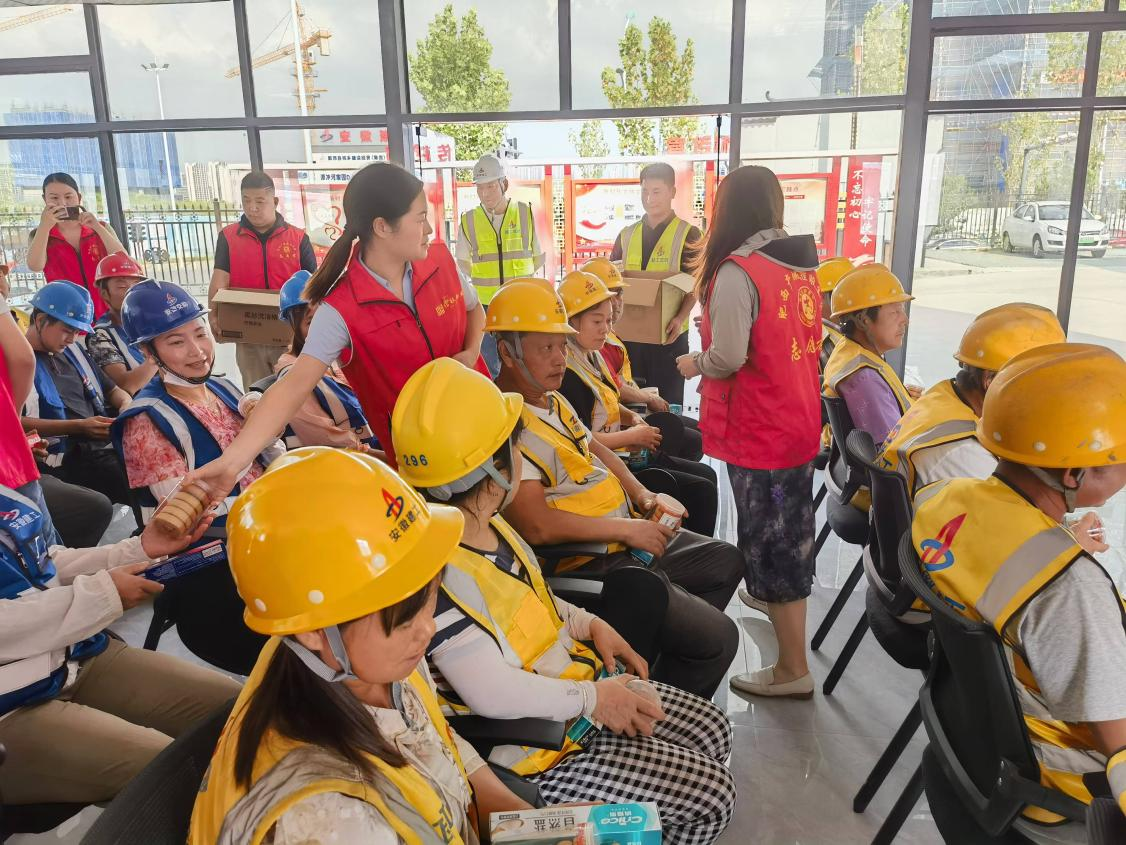 活動中,志愿者組織好現(xiàn)場的工友代表進行集中宣講,將黨的二十屆三中全會精神與工友的工作生活結合起來,用通俗易懂的語言講述教育、醫(yī)療等惠民政策,讓黨的聲音深入百姓心中。志愿者還對在場工友開展安全教育宣講,重點對消防安全、用電安全等內(nèi)容進行細致講解,對高處作業(yè)和交通安全等方面進行宣傳培訓,使工友了解作業(yè)中正確的防護措施,有效提高了工友的安全生產(chǎn)防范意識。隨后,志愿者將一份份精心準備的中秋慰問品送到工友手中,向他們表達節(jié)日的慰問,并叮囑大家務必保障自身安全,確保項目安全生產(chǎn)、有序施工。
