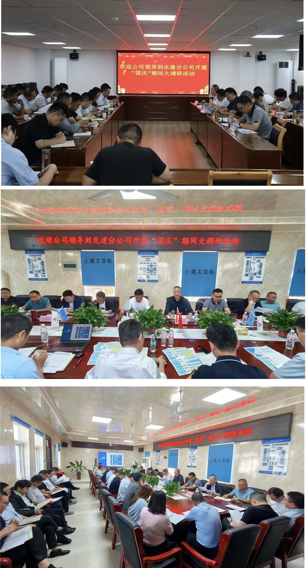 李登祥一行先后赴水建分公司、城建分公司、交建分公司及所屬重點項目,深入現(xiàn)場查看項目生產(chǎn)情況、現(xiàn)場重點區(qū)域假期安全保障工作,了解項目節(jié)假日期間應(yīng)急值守等工作安排,會議聽取分公司及項目負責(zé)人關(guān)于分公司發(fā)展規(guī)劃、市場經(jīng)營、項目建設(shè)、安全生產(chǎn)、人才培養(yǎng)等方面匯報,和與會人員進行深入交流討論。