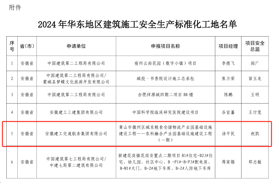 近日,皖南分公司所承建的城東糧食倉儲(chǔ)物流產(chǎn)業(yè)園項(xiàng)目喜獲“華東地區(qū)建筑施工安全生產(chǎn)標(biāo)準(zhǔn)化工地”榮譽(yù)稱號(hào),標(biāo)志著項(xiàng)目在安全管理、標(biāo)準(zhǔn)化施工等方面達(dá)到行業(yè)領(lǐng)先水平。