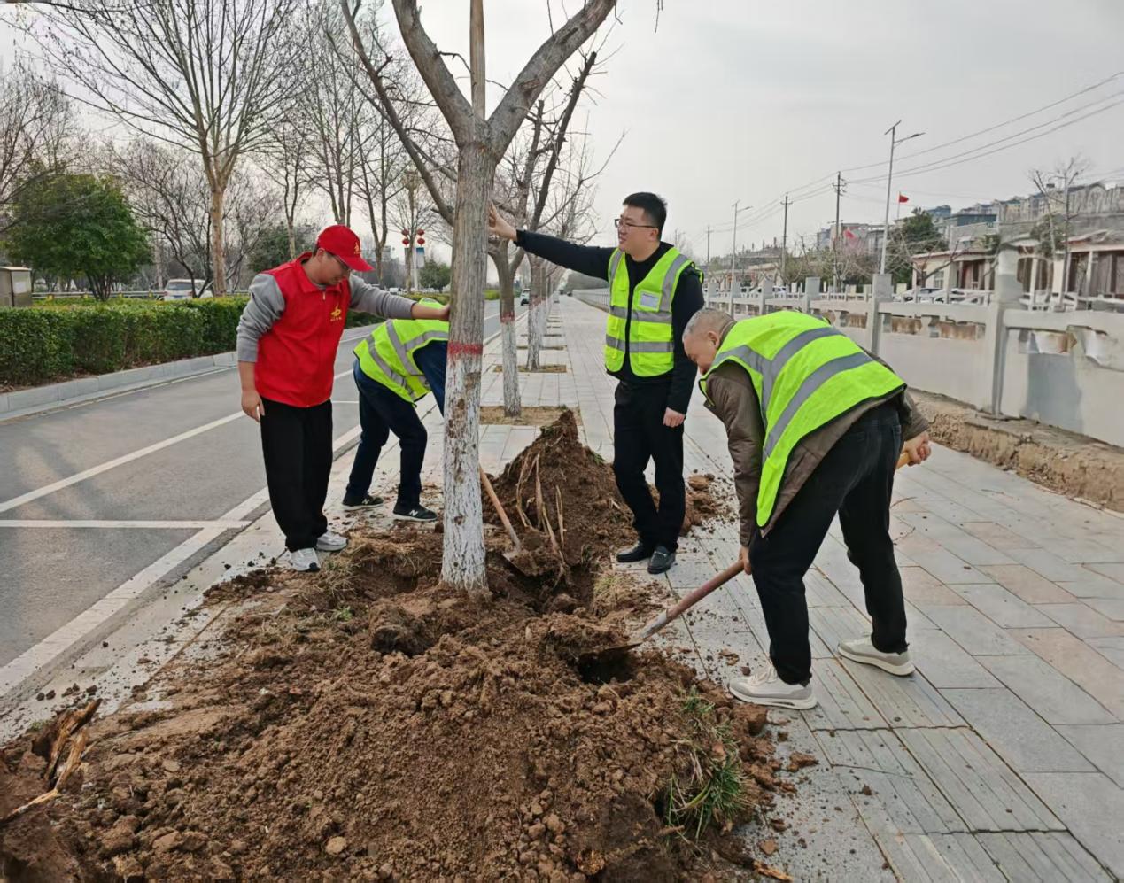 活動(dòng)現(xiàn)場(chǎng),黨員干部們熱情高漲、干勁十足。大家分工協(xié)作,揮鍬培土、扶苗圍堰、提水澆灌,每一道工序都一絲不茍。經(jīng)過數(shù)小時(shí)的辛勤勞動(dòng),共栽培、修復(fù)樹木20余株,為初春的大地增添了一抹盎然綠意。