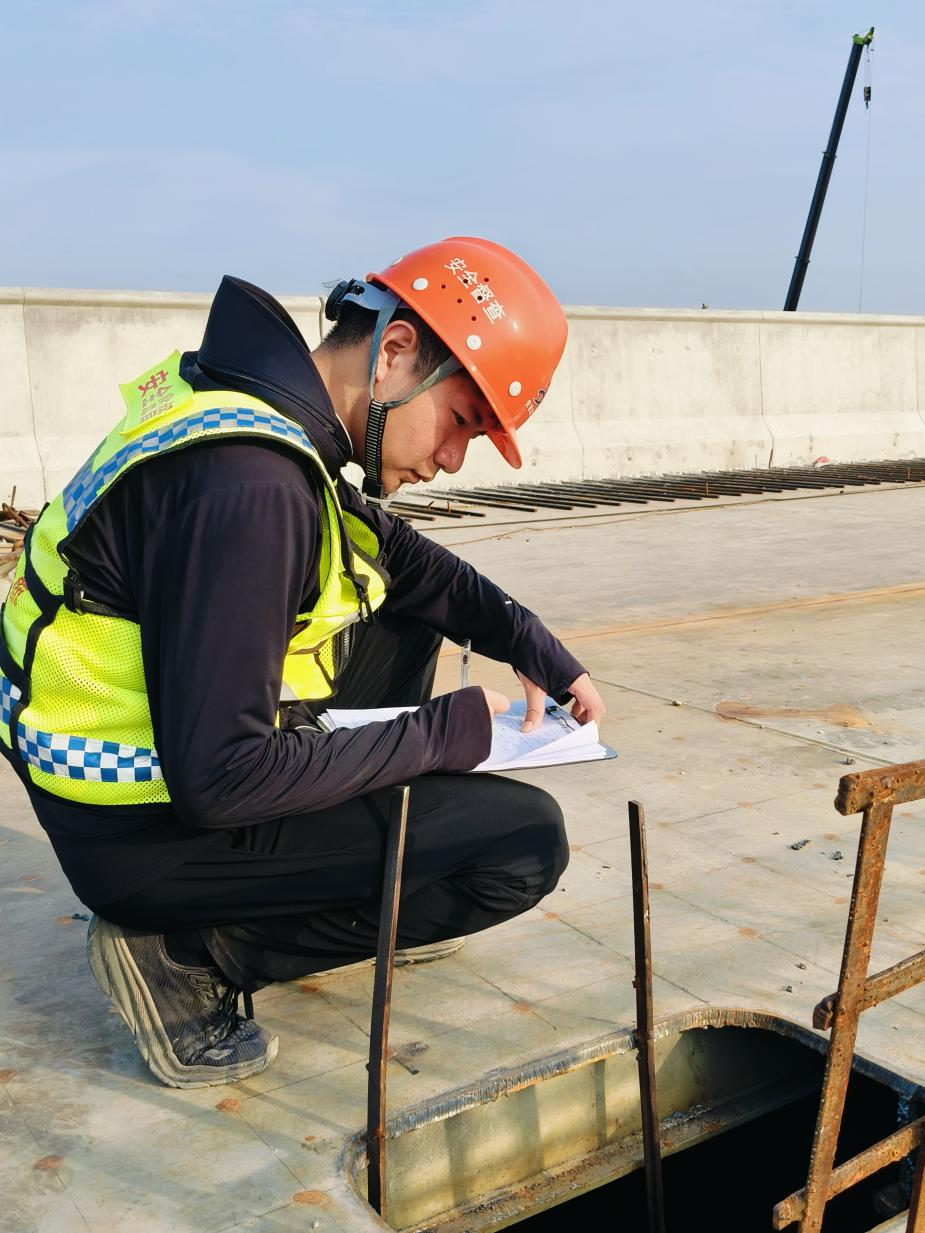 S18 寧合高速項(xiàng)目安全部副部長王漢卿每日扎根項(xiàng)目一線,反光背心被汗水浸透,仍在滾燙的橋面上不停穿梭,緊盯大型設(shè)備進(jìn)場驗(yàn)收,逐項(xiàng)核查標(biāo)準(zhǔn);巡回排查隱患,當(dāng)場糾正違章操作;反復(fù)叮囑落實(shí)防暑措施,以高度責(zé)任感筑牢高溫下的“安全屏障”。