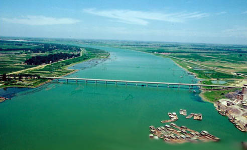 疏浚后的懷洪新河河道鳥(niǎo)瞰圖