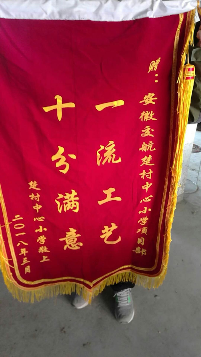 3月16日,蒙城楚村中心小學(xué)校長(zhǎng)郟峰一行專(zhuān)程趕往安徽交航蒙城楚村中心小學(xué)項(xiàng)目部,向項(xiàng)目部贈(zèng)送印有“一流工藝,十分滿意”的錦旗,并對(duì)項(xiàng)目部的辛勤付出表示由衷的感謝。